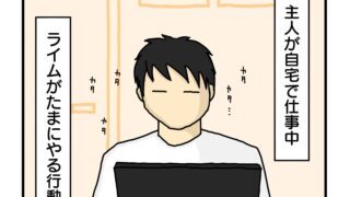 パン食っただけやんけwww自分が滅多にロールパンを食べないので驚いたようです。でっかいイモムシにでも見えたのかな?今後は初めてライムの目の前で食べる固形物には気を付けなければ。