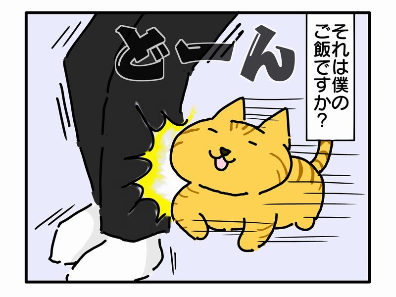 ライムはご飯が欲しい時にタックルしてきます。頭突きやスリスリは猫あるあるらしいです。ウチの子はそこそこ強いタックルor頭突き。