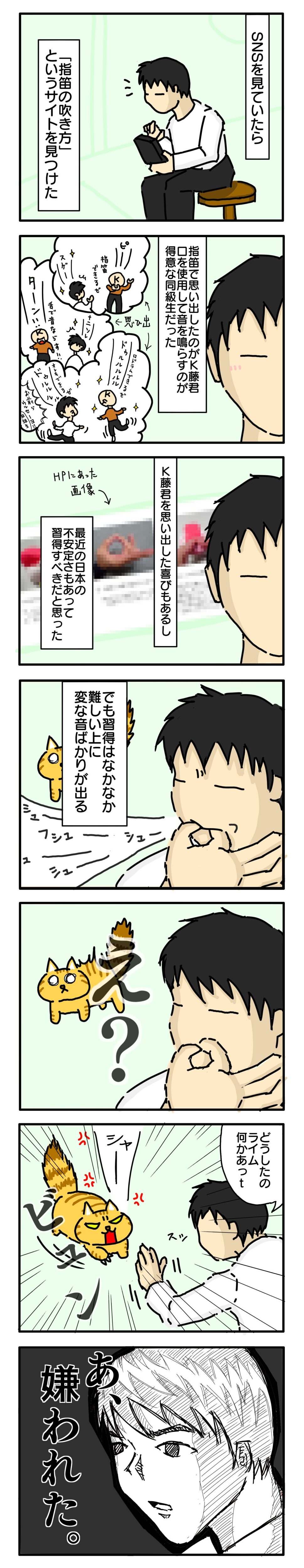 指笛を吹けない人が指笛を吹くと猫に嫌われてしまうらしい。おのれK藤!(関係ない)