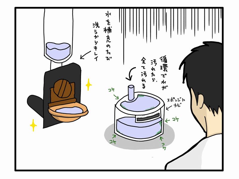 自動水飲み機を買った理由は「猫は流れる水を好んで飲む」という情報を知ったから。買った当初は凄く飲んでくれたので良かったのですが…。思い返してみれば赤ん坊の頃から流れない水も飲んでたわw