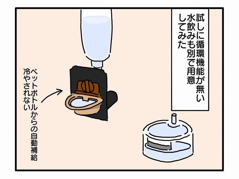 ペットボトルから自動補給の水飲みはライムが赤ん坊の頃に使用していました。小さい頃からよく水を飲む子で、お皿だけでは心配だったので購入。買って正解でした。そして捨てずに持っておいて良かった。猫は大人になってから身体にどんな変化があるか分かりませんね。